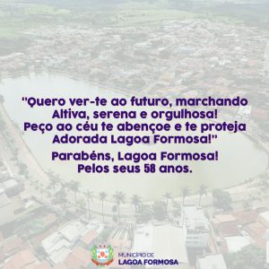 No dia 01 de Março, comemora-se o 58º aniversário da cidade de Lagoa Formosa. Os administradores de Nossa cidade sempre relacionaram à data, relevante importância e festividades envolvendo todos os setores da sociedade, valorizando, pois, a inquestionável importância de cada um que compõe esta história.