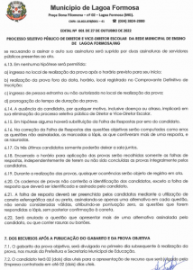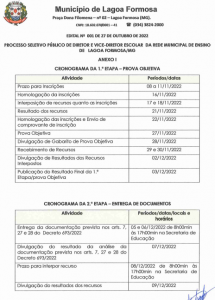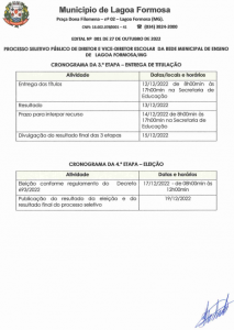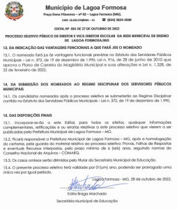 Processo para certificação de profissionais do Magistério da Educação Básica Pública da Rede Municipal de Ensino de Lagoa Formosa.